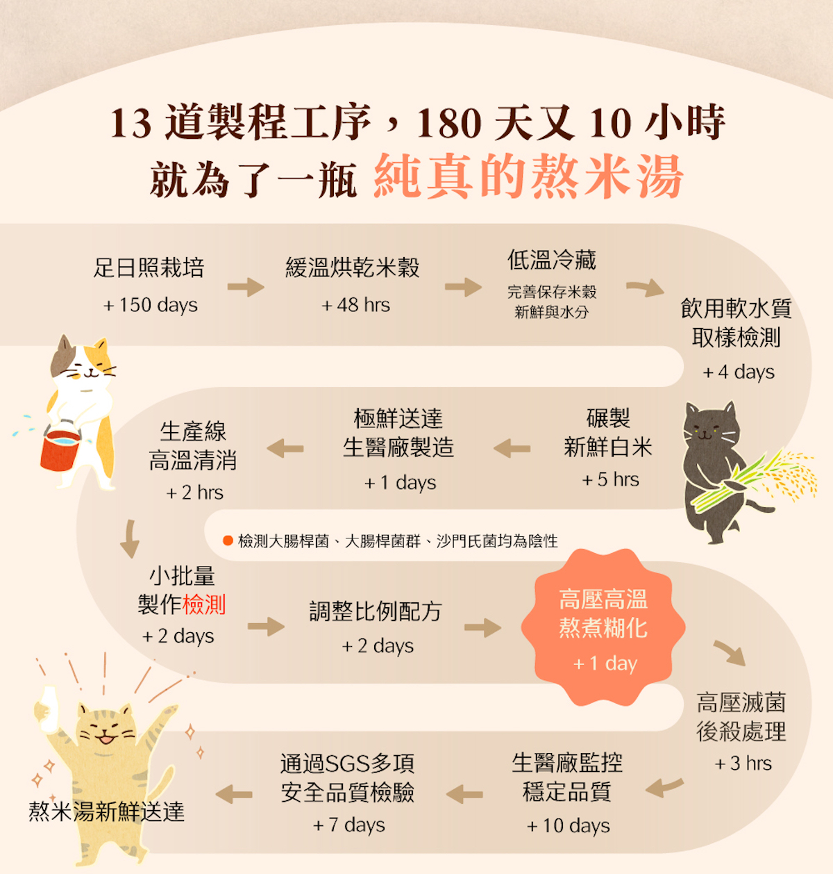 熬米湯在製作過程中,除了努力呈現出食材最原始的風味外,也必須要確保消費者的食品安全,因此在製造過程中,我們有二大核心工序: