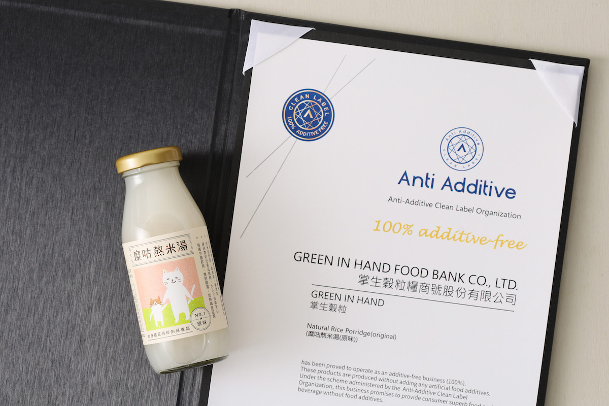 所謂無添加,在定義上來說,是指某種食品不含任何添加劑或化學物質。在這種情況下,食物是純淨的,沒有經過人工添加物質來增加保存期限、改變味道、色澤或是質地。以掌生穀粒的「糜咕熬米湯」為例,成分單純,只有水與白米經過高溫高壓熬煮,無添加防腐劑、人工色素、人工香料、增味劑、增稠劑、抗氧化劑等化學物質。